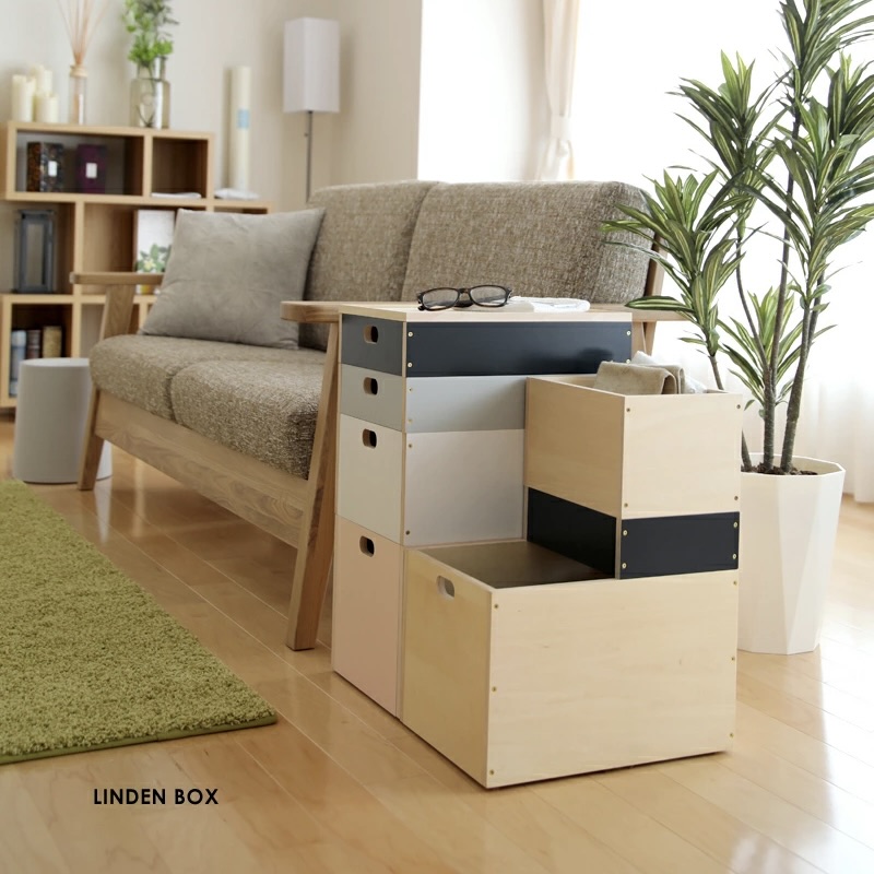 LINDEN BOX(リンデンボックス)は、日本のデザインブランド MOHEIM(モヘイム) が手がける、木製のスタッキング収納ボックス。