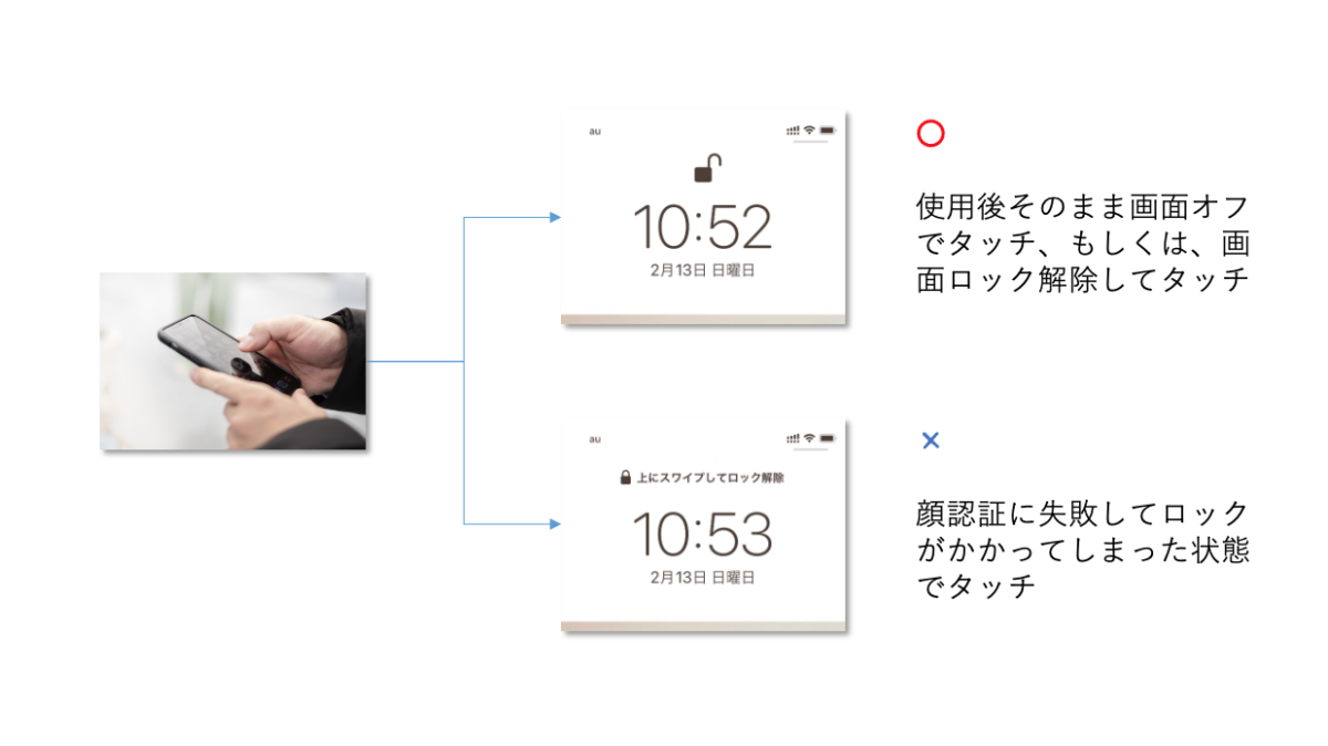 - Face IDに1度でも失敗すると → ✅ロックがかかる