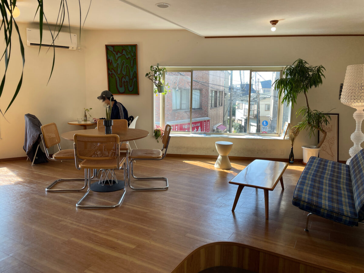 「レインオンザルーフ」は、三軒茶屋の三角地帯の中心にあるリノベカフェ。とっても重たい扉を開けて2階に登るととても広い空間があって驚きました。梁の見える天井など古民家の雰囲気を残していて、とても落ち着いた空間です。
