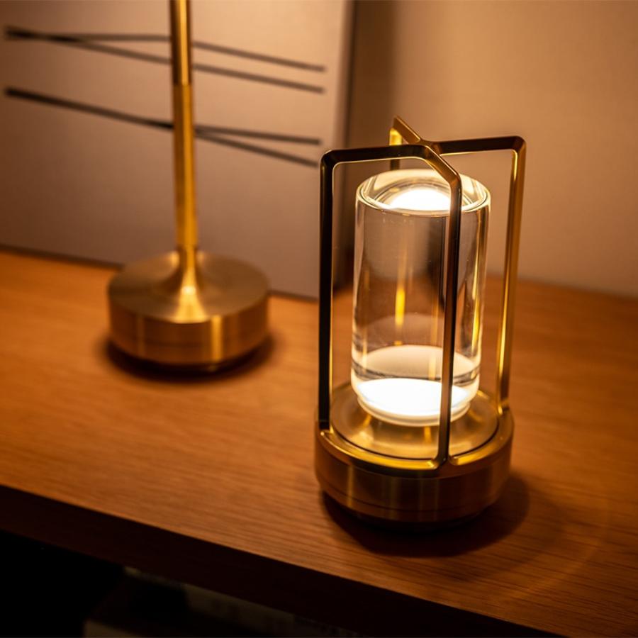 上部のタッチ操作で3段階調光が可能。USB充電式で、フル充電時には明るさに応じて長時間使用できます。主張の少ない佇まいは、リビングやベッドサイドはもちろん、書斎やホテルライクな空間とも好相性。デザイン性と実用性をバランスよく備えた、静かに空間の質を高めてくれるポータブルライトです。