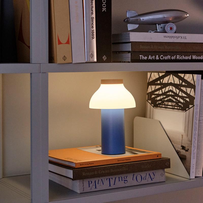 PC PORTABLEは、デンマークのインテリアブランド「HAY(ヘイ)」によるポータブルライト。デザイナーはジャスパー・モリソンで、無駄を削ぎ落としたミニマルなフォルムが特徴です。素材にはプラスチックが用いられており、本体は非常に軽量。気軽に持ち運べるため、ダイニングからベッドサイド、屋外までラフに使えます。