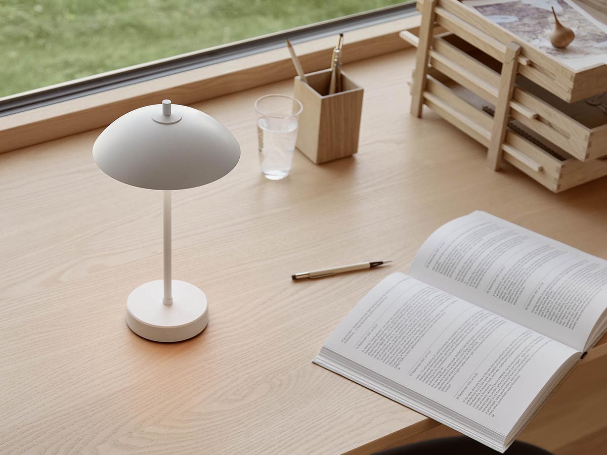 「&Tradition」には他にも可愛いデザインのポータブルランプがたくさんあります。Raku SH8は、日本の「楽焼」から着想を得た名の通り、釉薬をまとった陶器のようなマットで柔らかな質感が特徴のポータブルランプ。