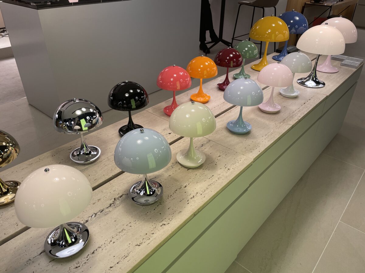 東京のフラッグシップストア「ルイスポールセン東京(Louis Poulsen Tokyo)」は、外苑前駅からすぐ、246号線沿いに位置しています。店内にはパンテラシリーズがずらりと並び、サイズや仕上げだけでなく、豊富なカラーバリエーションを実際に見比べることができます。写真では判断しづらい色味や光の表情も確認できるので、パンテラを検討している方にはぜひ訪れてほしい店舗です。