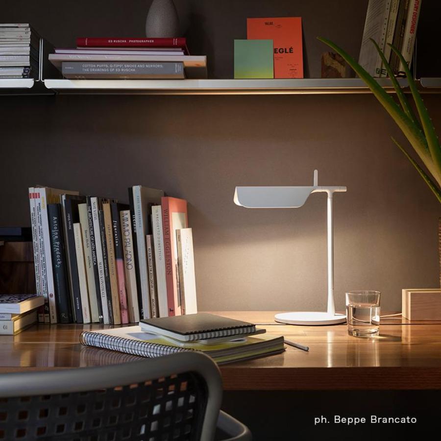 FLOS(フロス)の「TAB T(タブT)」は、イタリアの照明ブランドFLOSが、Edward Barber & Jay Osgerby(バーバー&オズガビー) によってデザインしたモダンなテーブルライト。シェードから支柱までが一体となった、線的でミニマルなフォルムが特徴です。装飾を抑えたデザインながら、空間にシャープな印象を与えます。