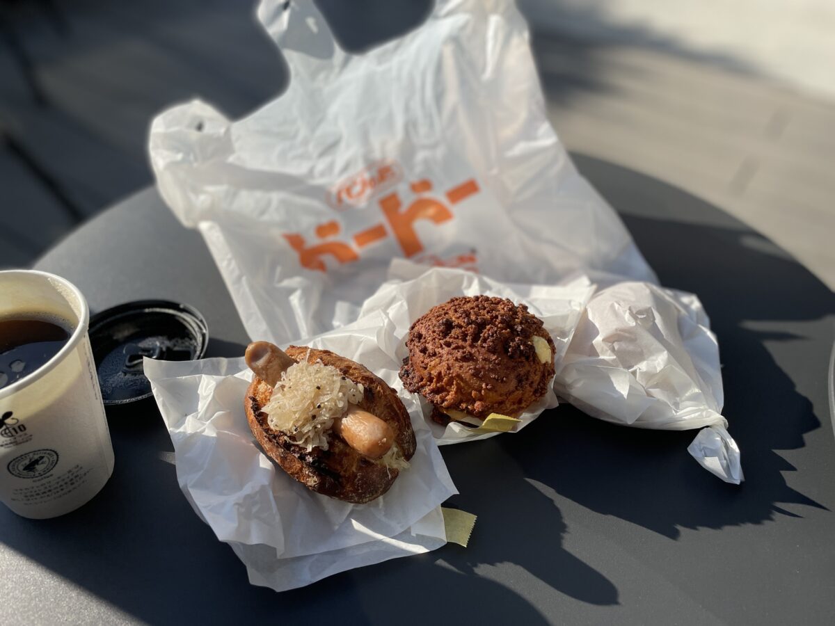 今回は、ブリオッシュ、ホットドッグ、クリームパン、塩パン、メロンパンを購入し、ホテルのラウンジスペースで食べました。