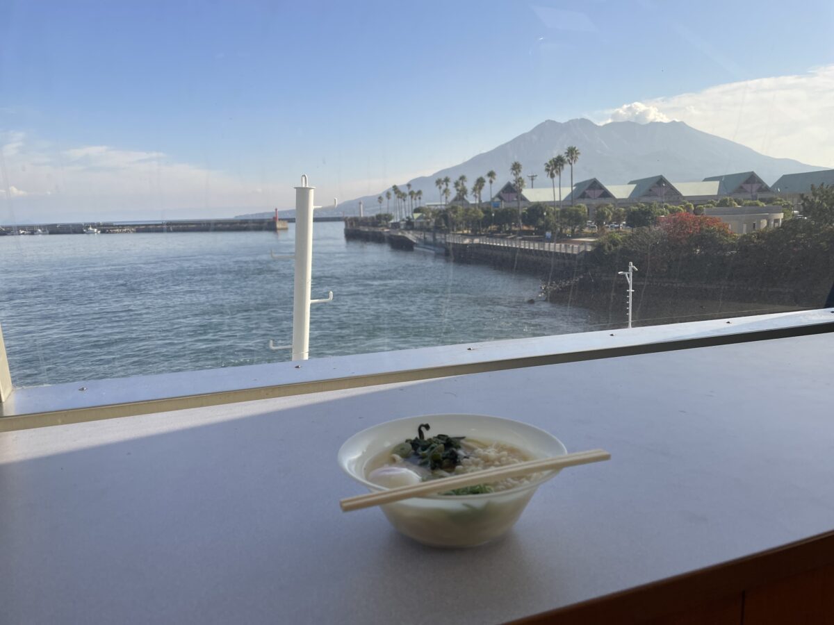カウンターで食べるもよし、フェリー内の好きな場所に持っていって食べるもよし、とのことで、私は桜島を眺めながらいただきました。