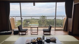 指宿駅に到着後は、そのままタクシーで「指宿温泉 こらんの湯 錦江楼」へ。少し早めでしたが、15時過ぎにチェックインしました。