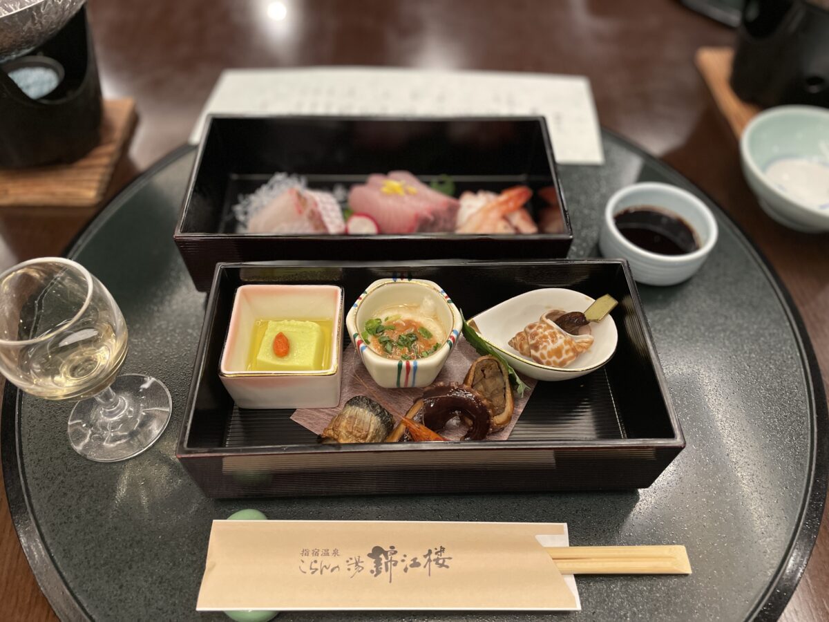 砂むし会館 砂楽で砂風呂を楽しんだ後は、宿戻って大浴場の温泉へ。温泉でさっぱりしたあとは、お待ちかねの夕食です。