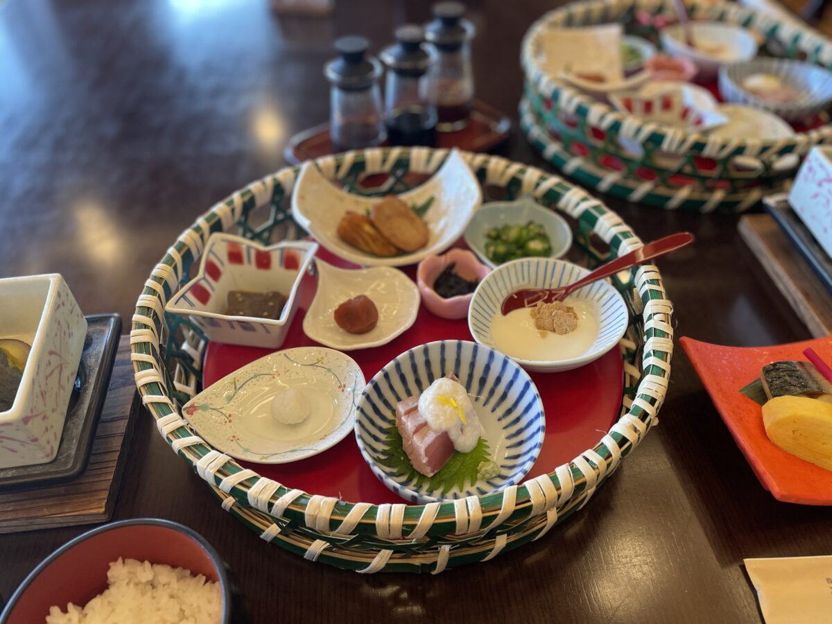 朝食は、体に優しい温野菜、焼き魚、鹿児島ならではの薩摩揚げなど、和食11品を楽しめる御膳。鹿児島旅行で薩摩揚げは意外と食べる機会がなかったので、ここで食べられて良かったです。