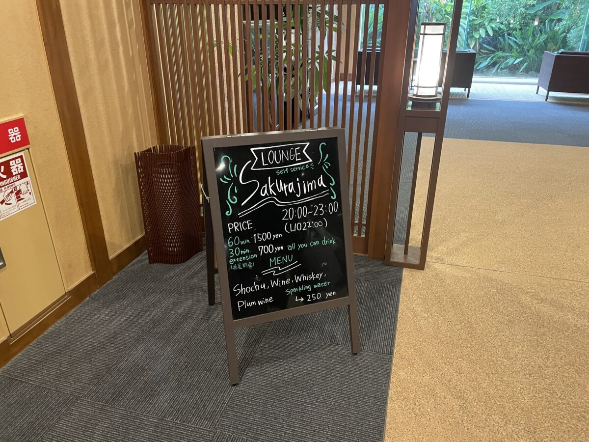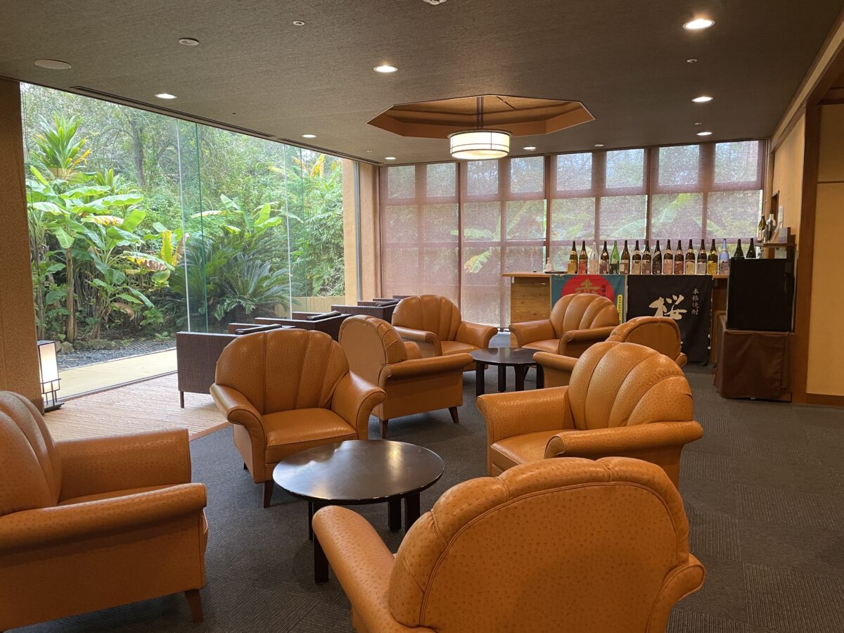 1階にはラウンジがあり、20:00〜23:00の間は、60分1,500円で芋焼酎の飲み比べが楽しめるようです。今回は利用しなかったため詳細までは分かりませんが、セルフサービス形式とのことで、気になる銘柄を少しずつ試したり、好みの焼酎をじっくり味わったりと、自分のペースで楽しめそうな雰囲気でした。